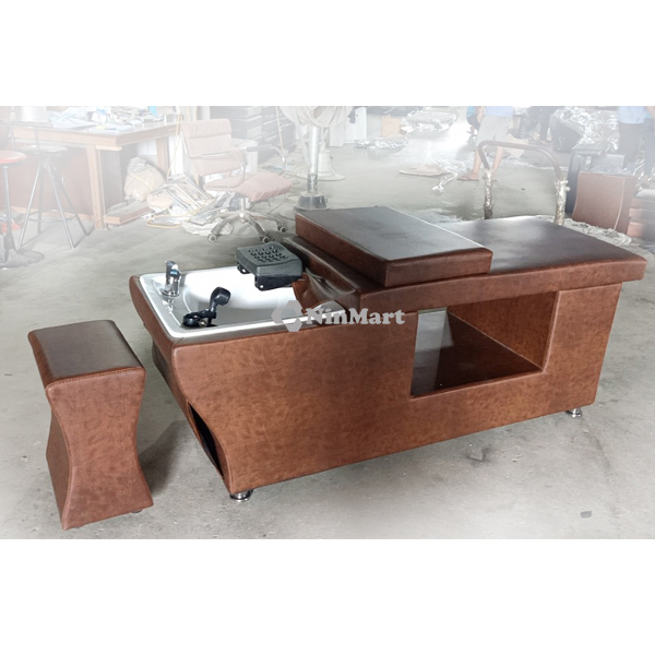 Giường gội đầu được sản xuất khung với các chất liệu thép hộp nhập khẩu nguyên thanh, gỗ tự nhiên được tẩm sấy chống cong vênh, mối mọt.
